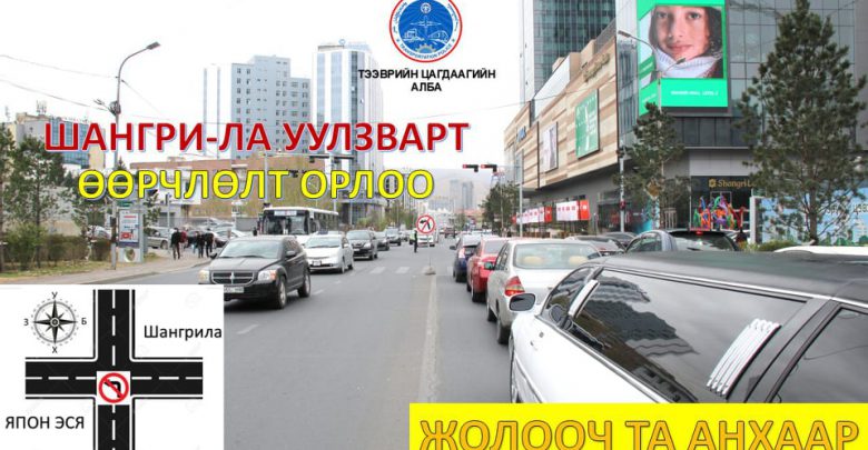 Сүхбаатар дүүргийн нэгдүгээр хорооны нутаг дэвсгэрт Олимпийн гүүр шинээр ашиглалтад орсноор Олимпийн гудамж хойноос урагш чиглэсэн хөдөлгөөний эрчим нэмэгдэж Энхтайваны өргөн чөлөөнд ачаалал өгч хөдөлгөөний ачаалал нэмэгдсэнтэй холбогдуулан Шангри-Ла буюу Япон ЭСЯ-ны уулзварт хойноос зүүн гар тийш буюу Элчингийн гудамжруу эргэхийг хориглож, чиглэлийг өөрчиллөө.
