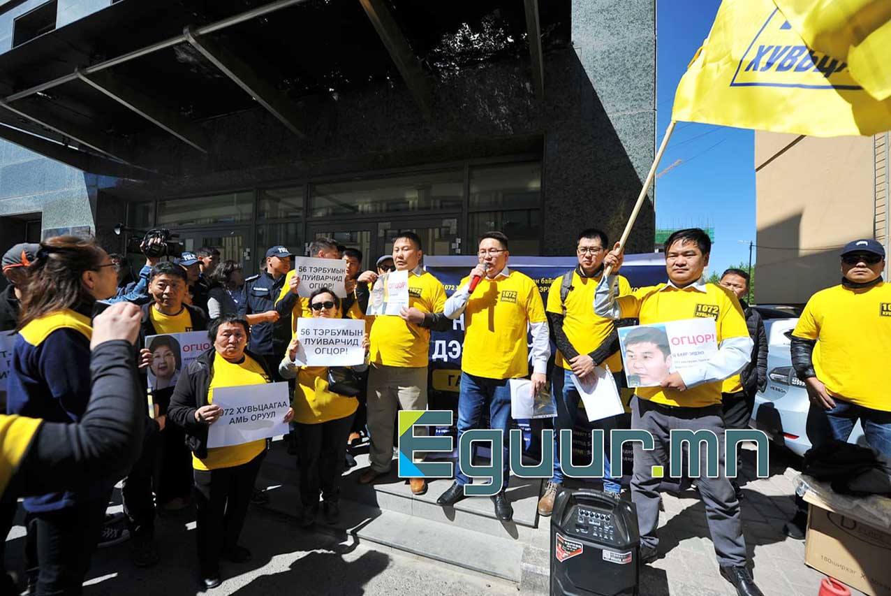 Өнөөдөр “1072 хувьцаа эзэмшигчдийн эрх ашгийг хамгаалах холбоо” “Эрдэнэс-Таван толгой ХК-ны гадна талбайд тайван жагсаал зохион байгуулж байна.