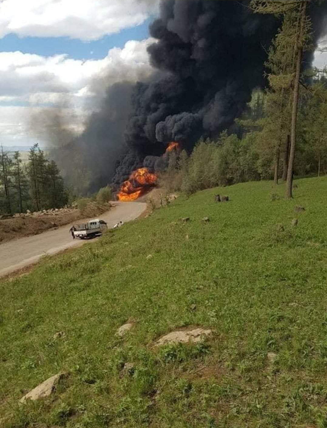 Архангайн Цагаан даваанд шатахуун ачиж явсан автомашин ОСОЛДОЖ, гал гарчээ