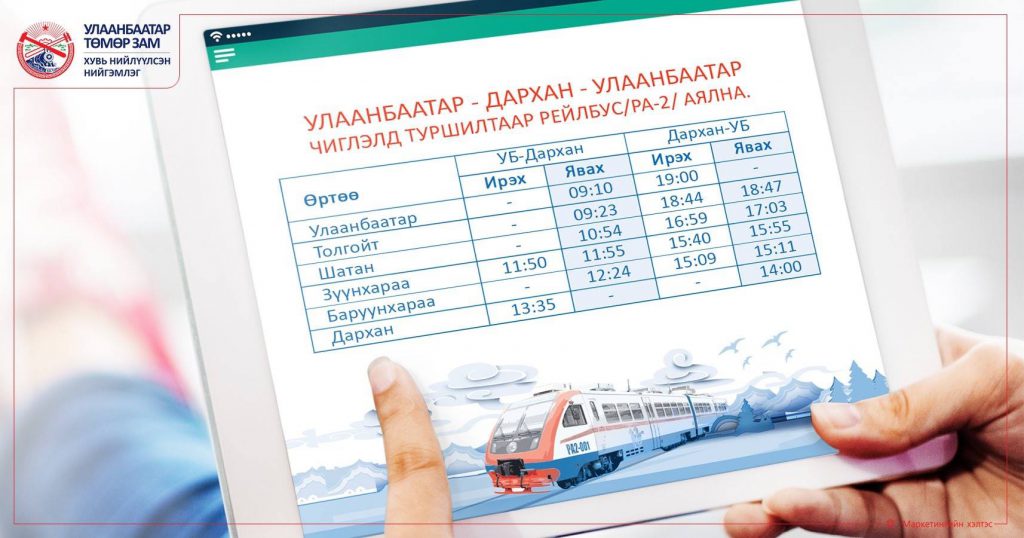 Рейлбус Улаанбаатараас өглөөний 09.10 цагаас хөдөлж, Дарханд 13.25 цагт очих ажээ. Тарифийн хувьд Рэйлбусаар том хүн 14.600 төгрөгөөр, зөөлөн суудлаар 16.400 төгрөгөөр, хүүхэд 6400-7100 төгрөгөөр тус тус зорчиж буй юм байна.