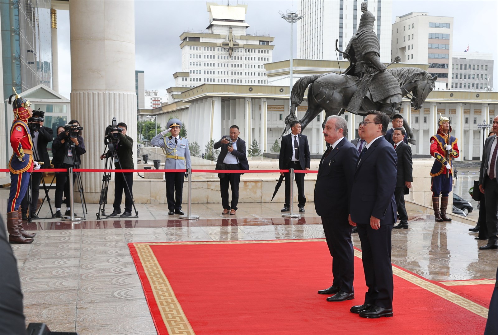 Монгол Улсын Их Хурлын дарга Гомбожавын Занданшатар Монгол Улсад албан ёсны айлчлал хийж буй Бүгд Найрамдах Турк Улсын Үндэсний Их Хурлын дарга, ноён Мустафа Шентопыг өнөөдөр (2019.07.29) их жанжин Д.Сүхбаатарын талбайд угтан авч, мэндчиллээ.