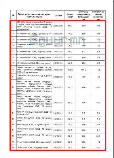 - “Утаагүй Улаанбаатар хөтөлбөр”-ийн хүрээнд хэрэгжүүлэх арга хэмжээний зардалд 30 тэрбум 170 сая 379 мянга