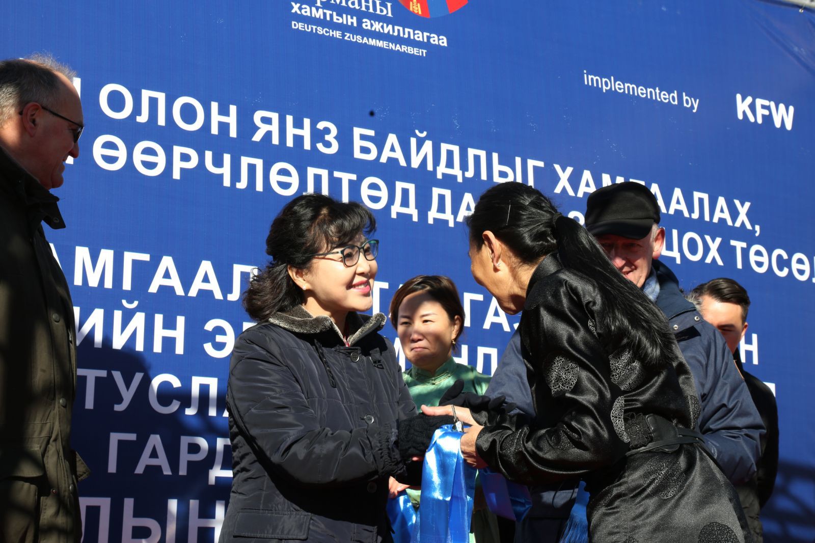 Төв аймгийн Эрдэнэ сумын Эрүүл мэндийн төвийн жолооч Б.Түмэндэлгэр: “Миний хувьд сумынхаа Эрүүл мэндийн төвд 16 дахь жилдээ жилдээ жолоочоор ажиллаж байна. Манай нутаг 60 гаруй хувь нь ой модоор бүрхэгдэн хад чулуу, бартаа, шавар, ус ихтэй учраас түргэн тусламжийн дуудлага өгсөн иргэнийг авах, анхан шатны тусламж үйлчилгээ үзүүлэх, тэр дундаа хэвтрийн өвчтнийг зөөвөрлөхөд маш их хүндрэлтэй байдаг. Өнөөдөр бид иж бүрэн тоноглогдсон энэхүү түргэн тусламжийн автомашиныг гардан авснаар нутгийн иргэддээ эрүүл мэндийн үйлчилгээг цаг алдалгүй хүргэх, газар дээр нь анхан шатны тусламж үзүүлж, эмчилгээ хийх гэх мэт олон сайхан өөрчлөлт гарах юм. Орон нутгийн иргэд өөрсдөө байгаль хамгаалагчдаасаа дутуугүй байгалиа хайрлаж, хамгаалдаг. Улсын тусгай хамгаалалттай газар нутгийн байгаль хамгаалагчид, иргэдийн эрүүл мэндийн төлөө үр дүнтэй төсөл, хөтөлбөрүүдийг хэрэгжүүлж байгаа Байгаль орчин, аялал жуулчлалын яам, Германы Сэргээн босголтын зээлийн банкинд баярлаж байгаагаа уламжлая.”