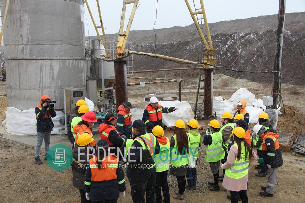 Эрдэнэт үйлдвэрийн Хаягдлын аж ахуйн элсний хуримтлал нийт 1300 га талбайг эзэлдэг. Үүний 800 орчим га талбайд цагаан тоос дэгддэг бөгөөд өнөөдрийн байдлаар энэ талбайн 600 гаруй га буюу 80 хувьд нь цагаан тоос дарах ажил хийгдсэн байна. Өөрөөр хэлбэл, одоогийн байдлаар, цагаан тоос дэгддэг нийт талбайн 80 орчим хувийг нь дараад байна. Өнгөрсөн жил Эрдэнэт үйлдвэр, Баяжуулах үйлдвэрийнхээ дэргэд Цагаан тоос дарах ажлын алба байгуулан, Байгаль орчин, ногоон хөгжлийн хэлтэстэй хамтран технологийн гурван арга нэвтрүүлсэн нь ийм үр дүн өгчээ. Уулзалтын дараа Говил, Баянцагаан багийн иргэд Хаягдлын аж ахуйд цагаан тоос дарах ажил хэрхэн үргэлжилж буйг газар дээр нь үзэж, бодит байдалтай танилцлаа.
