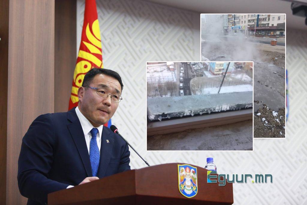 “БГД-ийн 6-р хорооны 65 байр, 21 ААН-ийг хамарсан өргөн талбайд дулааны шугам сүлжээний гэмтэл гарснаас үүдэн гурав дахь хоног дээрээ ямар ч халуун ус, дулаангүй хүнд нөхцөл байдалд байна.