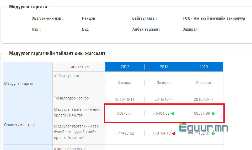 -Р.БУД ТӨҮГ-ЫН ДАРГА БОЛСНООС ХОЙШ ОРЛОГОО ХОЁР ДАХИН НЭМЭГДҮҮЛЖЭЭ-