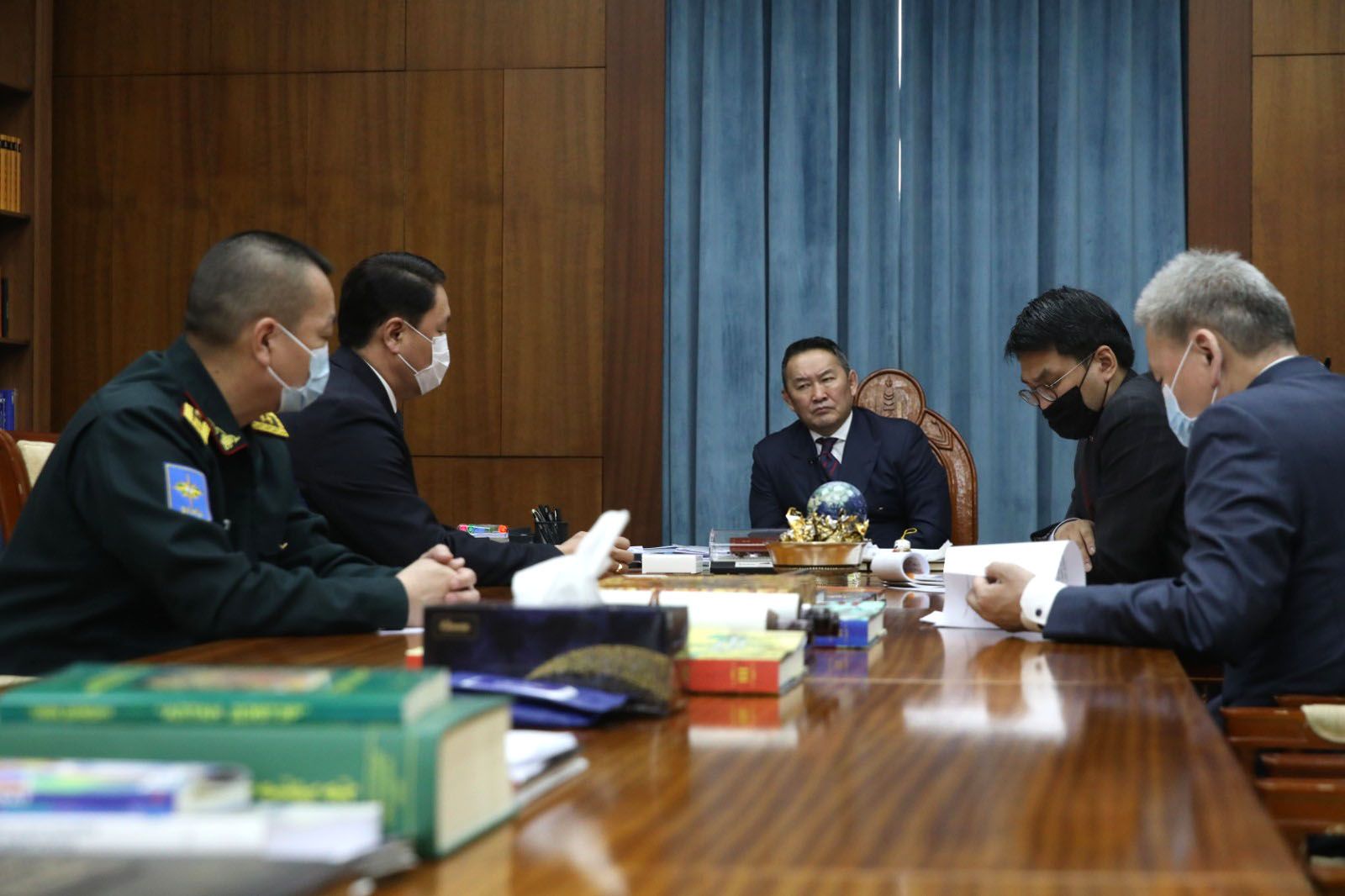 Монгол Улсын Ерөнхийлөгч, Зэвсэгт хүчний Ерөнхий командлагч Халтмаагийн Баттулга өнөөдөр Батлан хамгаалахын сайд, Бригадын генерал Г.Сайханбаяр, Зэвсэгт хүчний Жанжин штабын дарга, Хошууч генерал Д.Ганзориг нарыг хүлээн авч уулзаж, үүрэг чиглэл өглөө.