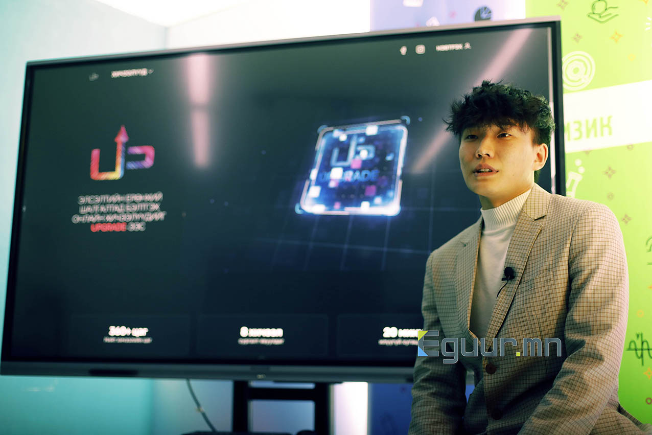 Бид математик, физик, хими, газар зүй, нийгэм судлал, биологи, англи хэл гэсэн найман хичээлийн 360 цагийн хичээлийг ЭЕШ-ийн цөм хөтөлбөрийн дагуу бэлтгэн, “Upgrade.mn” сайтдаа байршуулсан. Сурагчид үлгэрчилсэн хичээлээс үзчихээд, сэдвүүдээ харсныхаа дараа хичээлээ сонгох боломжтой. Манайх гэрээт найман багштай. Бид багш нарынхаа заах арга барил, туршлагад их анхаардаг, чухалчилдаг.