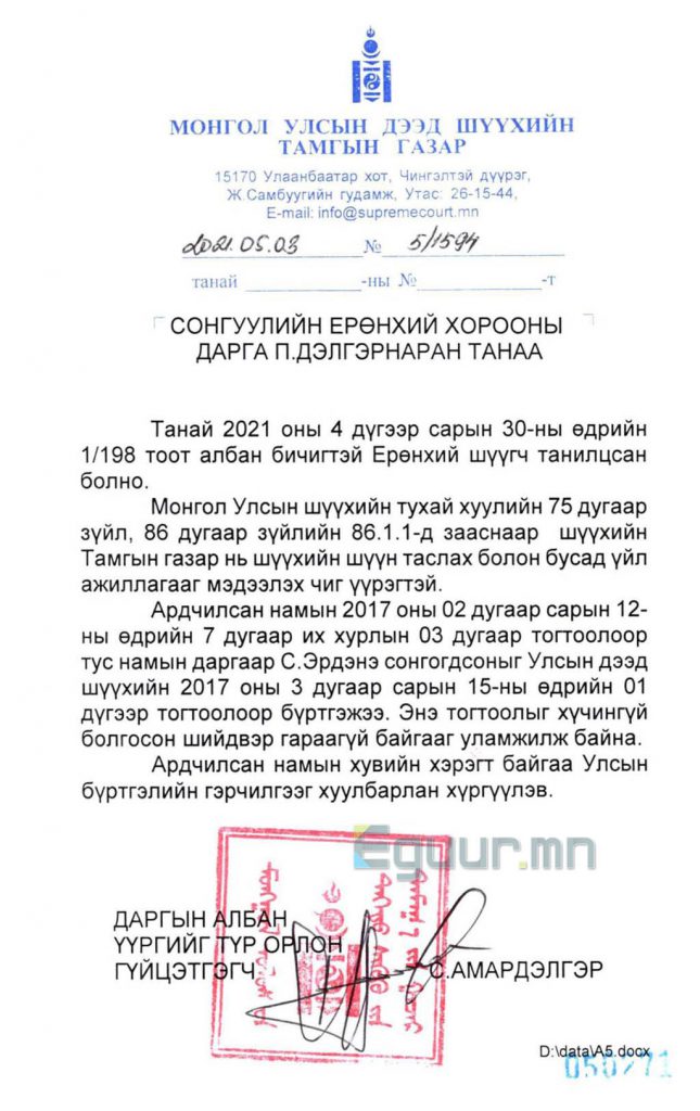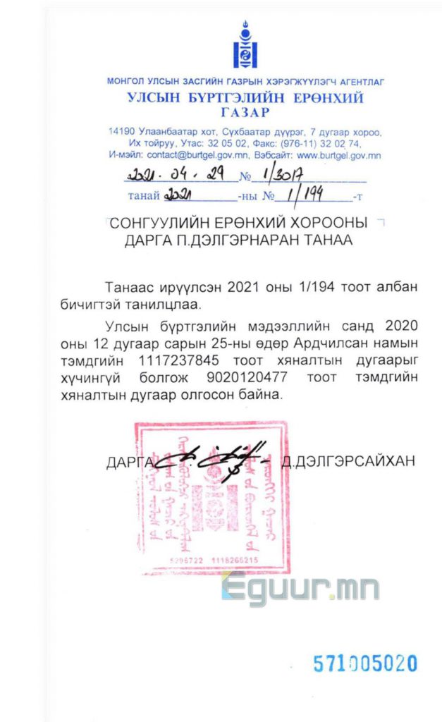 Сонгуулийн ерөнхий хорооны албан мэдээлэл: