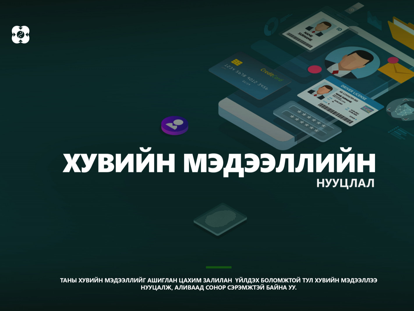 Хүн бүр төрөхөөс эхлэн өөрт өгөгдсөн болон амьдралын явцад олж авсан, өөрсдөө үүсгэн бий болгосон зэрэг их хэмжээний хувийн мэдээлэлтэй байдаг. Эдгээр мэдээллээ бид сургуульд элсэх, ажилд орох, хүүхдээ сургууль цэцэрлэгт бүртгүүлэх, банканд данс нээлгэх гээд өдөр тутам ашиглаж, бусдад дамжуулж байдаг. Тэгвэл бидний яг ямар мэдээлэл хувийн мэдээлэлд хамаарах, үүнийгээ хэрхэн нууцлах тухай тэр бүр хангалттай мэддэггүй. Таны төрсөн он сар, регистрийн дугаар, тэр ч бүү хэл хаяг байршил хүртэл нууц мэдээлэлд ордог юм шүү.