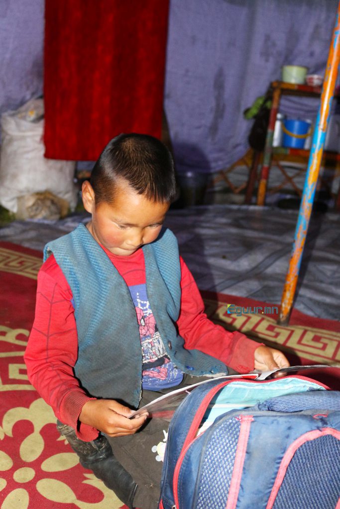 Цар тахал боловсролын салбарыг үнэнхүү ниргэсэн. Ээждээ үнсүүлээд, аавыгаа дагаад эрдэм сурахаар явсан хүүхдүүд хоёр сар 11 хоног шинэ орчинд дасаад эргээд л гэртээ харьсан. Үсэглэлийн баяраа ч тэмдэглээгүй. Гэсэн ч Ч.Энхбаатар хүү “Сургуульд явах л гоё” хэмээн ярьж, 30 хүртэл тоолж үзүүллээ. Нэгдүгээр ангиа төгссөн сурагч 30 хүртэл тоолж, холбож уншиж чадахгүй, эгшиг долоо, найман гийгүүлэгч л мэдэж байгаа нь харамсалтай санагдаж байж болох юм. Гэсэн ч тэр хотын хүүхдүүдээс илүү эрдэм өвөртөлсөн сурагч. Ингэж хэлсний учир нь тэр малын зүс мэднэ. 30-аас дээш тоолж мэдэхгүй ч түүний цээжинд малын өчнөөн өнгийн зүс бий. 20 хурга хашчихаад эхийг нь олоод тавиад өг гэвэл тэр ямар ч асуудалгүй чадна. Чадна гэдгээ ч толгой дохин хэлж байлаа.