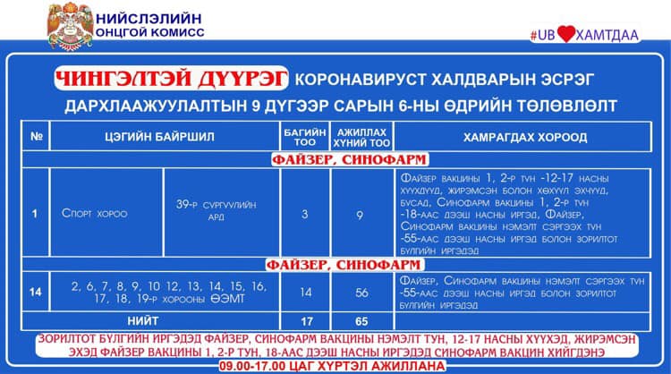 ТАНИЛЦ: Өнөөдөр ажиллах дархлаажуулалтын цэгүүд