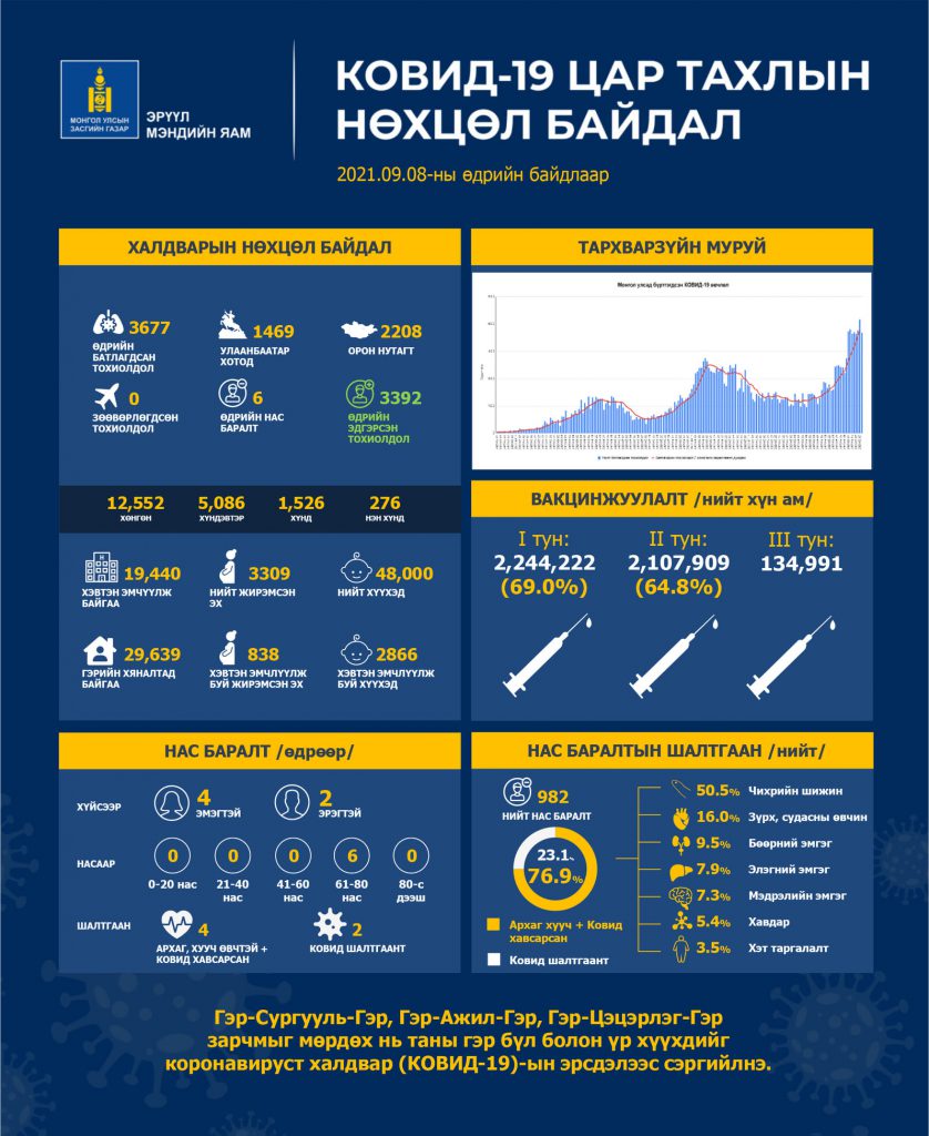 Өнгөрсөн 24 цагт коронавируст халдварын 3,677 тохиолдол бүртгэгдсэн бол 3,392 хүн эдгэжээ. Халдвар аван эмнэлэгт болон гэртээ тусгаарлагдан эмчлүүлж байсан эдгээр иргэд ийнхүү хяналтаас гарч байна.