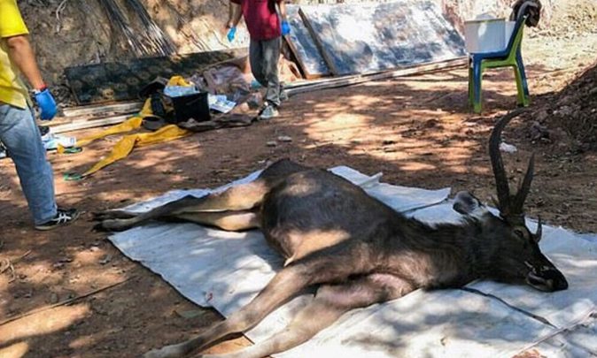 Тайландын Бангкокийн нэгэн үндэсний цэцэрлэгт хүрээлэнд үхсэн буга олджээ. 200 кг жинтэй тухайн бугын гэдэснээс хогны уут, резинэн бээлий, дотуур хувцас гэх мэт олон төрлийн хог гарч ирсэн байна. Эдгээрийг жинлэж үзэхэд долоон кг болсон, үүнээс болж буга үхсэн байж болзошгүй гэнэ.