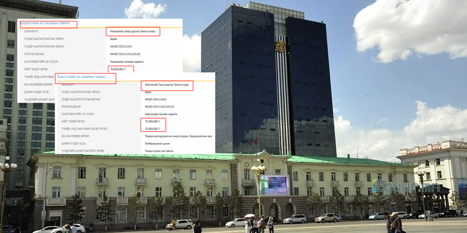 Нийслэлийн Засаг даргын тамгын газар “Удирдлагуудын тавилга”, "Хүндэтгэлийн их танхимын тавилга” гэх тендерийг 140 сая төгрөгөөр зарлажээ. Эл тендерийг 2021 оны арванхоёрдугаар сарын 08-ны өдөр зарласан бөгөөд арванхоёрдугаар сарын 16-ны өдрийг хүртэл материал хүлээн авна хэмээжээ. Ингэхдээ татвар төлөгчдийн улсын төсөвт төвлөрүүлсэн мөнгөөр эл ажлаа хийнэ хэмээн цохон дурдсан юм.