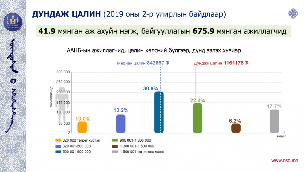 СТАТИСТИК: Дундаж цалин 1 сая 116 мянган төгрөг байна