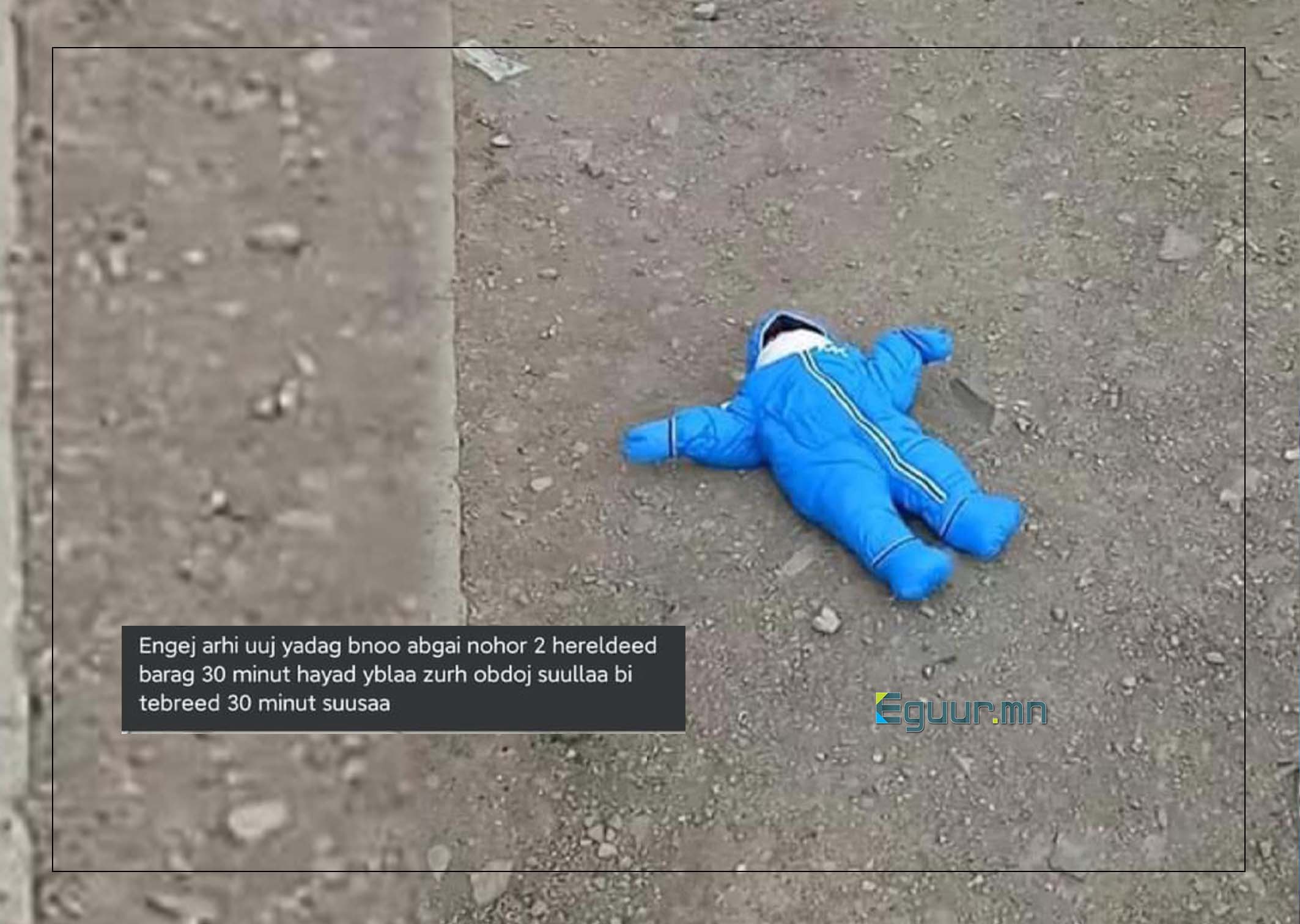“Налайх дүүрэгт дөрвөн сартай хүүхдийг гадаа гудамжинд тавьж, аав ээж нь хоорондоо хэрэлдээд 30 гаруй минут орхиж явлаа” гэх тайлбартай зураг, бичлэг цахим орчинд тарсан.