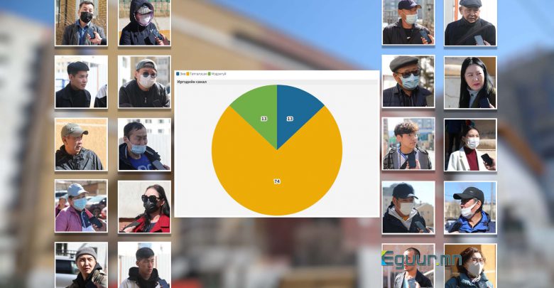 Санал асуулгад оролцсон 15 иргэний хоёр нь хороо байгуулах нь зөв гэж үзсэн бол хоёр иргэн мэдэхгүй, үлдсэн 11 иргэн татгалзсан саналыг өгчээ. Өөрөөр хэлбэл, 74 хувь нь татгалзсан санал өгсөн гэсэн үг. Үүнийг хувьчилж үзүүлбэл: