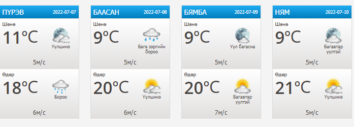 ЦУОШГ-аас дээрх өдрүүдийн цаг агаарын урьдчилсан төлөвийг гаргажээ.