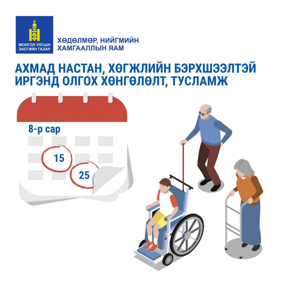 Ерөнхийдөө тэтгэвэр, тэтгэмж, хөнгөлөлт, тусламжийг энэ сарын 15-наас 25-ны өдрүүдэд олгох ажээ. Дэлгэрэнгүй хуваарийг дараах зургаас харна уу.