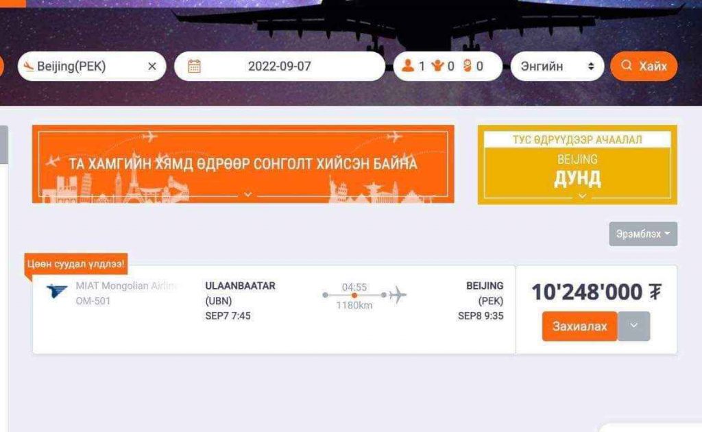 Улаанбаатар-Бээжин чиглэлийн нислэгийн тийз 10 сая төгрөгт хүрсэн гэх зураг бүхий мэдээлэл цахим орчинд түгээд буй. Бид уг мэдээллийг эш үндэстэй, үнэн бодит эсэхийг нягталлаа.