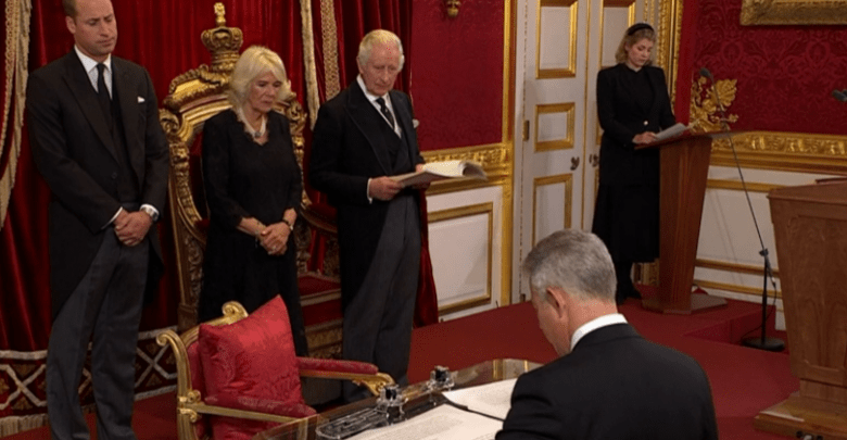 Үүний өмнө Чарльзыг хаан ширээнд залах тунхаг бичгийг уншиж танилцуулсан бөгөөд энэ үед танхимд Гордон Браун, Дэвид Камерон Борис Жонсон, Тереза Мэй нарын зэрэг Британийн үе, үеийн Ерөнхий сайд нар байлцсан юм.
