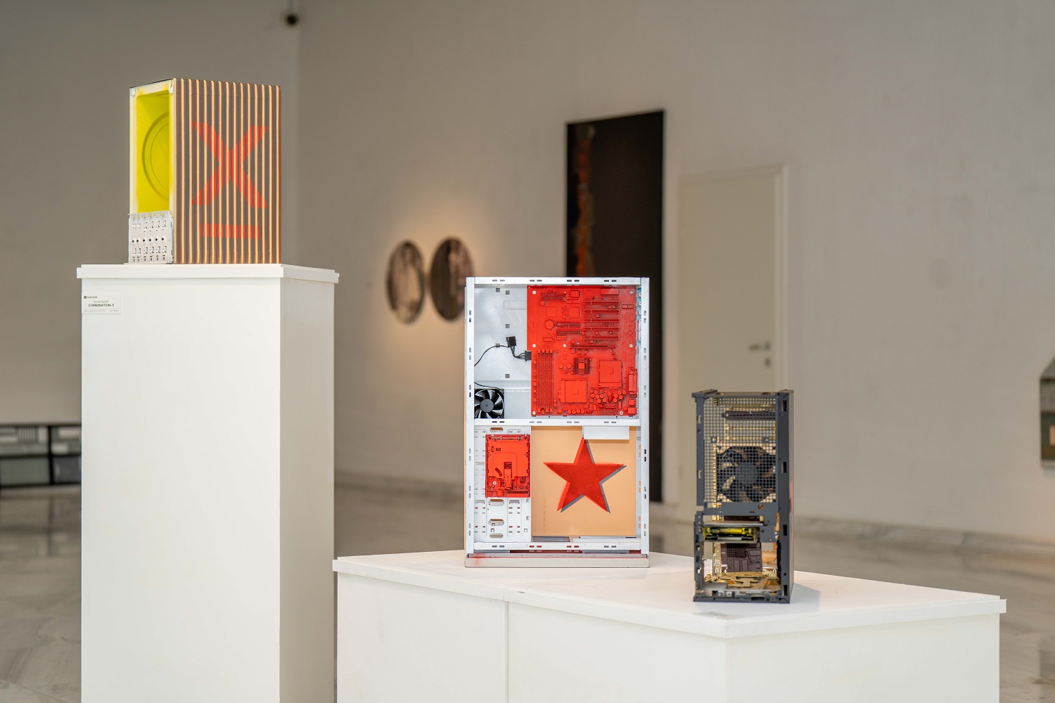 Компьютер, цахилгаан хэрэгсэл, тавилга, замын тэмдэг зэрэг эд зүйлээс бүтсэн, содон хэлбэр, агуулга бүхий түүний ассембляжууд хийсвэр, хоосноос үүдсэн төсөөллийг эд зүйлээр, өнгө будаг, санаагаар дамжуулан бодитжуулахыг зорьсон мэт.