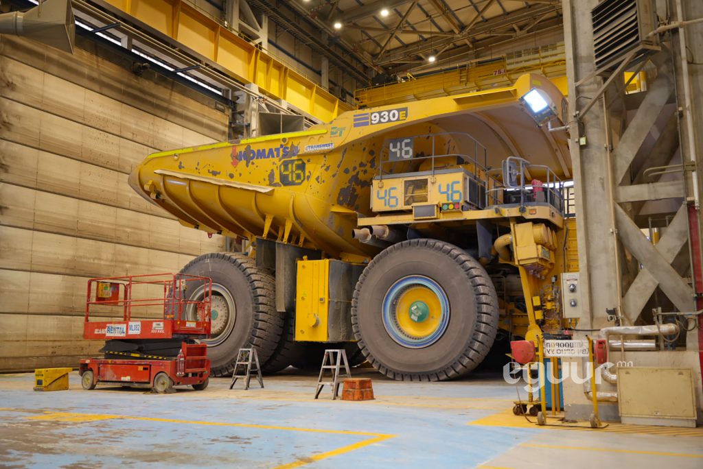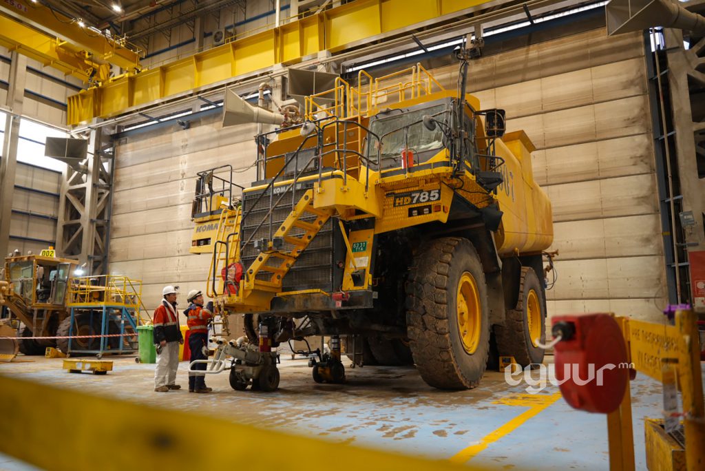 Байрлах өрөөнүүдийнхээ түлхүүрийг аваад өглөөний цайгаа уувуутаа ил уурхай руу яаравчлав. Хамгийн түрүүлээд том оврын тэрэгний засвар хийдэг нэгжээр оров. Тэнд 2700-3500 морины хүч чадалтай 930Е-4se маркийн комацү гэх аварга машин. Дараа нь ярайтал ухаж, шат шиг болгочихсон ил уурхайн олборлолтын талбайг харуулаад цааш хөдлөв.