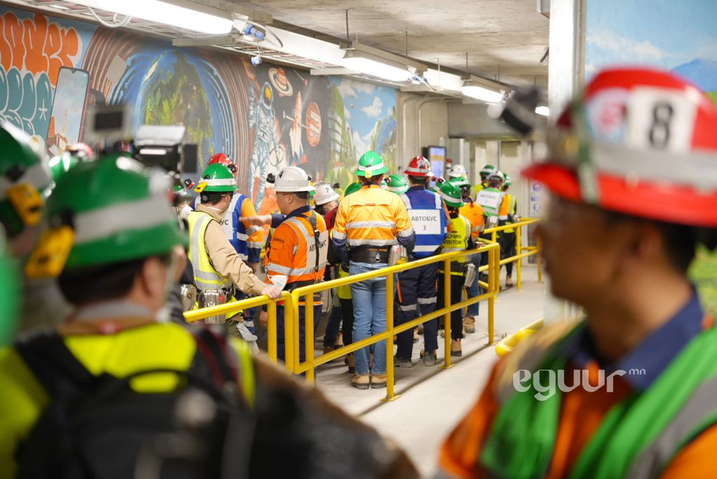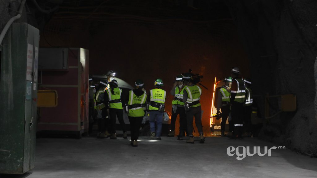 Гүний уурхайд гурван цаг гаруй явж, газрын гүнд хийж буй ажлуудыг үзэв. 1300 метрт буухаас өмнө эхлээд уурхайн ажилчдын нэгэн адил хамгаалах хувцас хэрэглэл өмссөн юм. Үүнд хамгаалалтын нүдний шил, арьсан бээлий, тоосонцор шүүх зузаахан амны хаалт, цацруулагчтай хантааз, гурван янзаар асдаг малгай, угаарын хий хэмжигч, бүс, амь хамгаалагч гэх мэт зүйлсийг нэрлэж болно. Эдгээрээр тоноглоод амьсгалахад ч, алхаж явахад ч амаргүй.