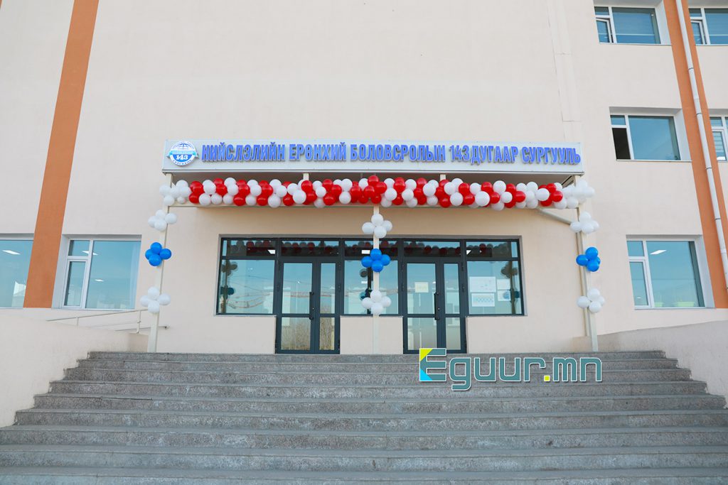 Өнөөдөр /2019.11.08/ Сонгинохайрхан дүүргийн 23 дугаар хороонд 143 дугаар сургууль өнөөдөр шинээр үүд хаалгаа нээлээ. Тус хороо өмнө нь төрийн өмчийн сургуульгүй байсан бөгөөд ийнхүү шинэ сургуультай болсноор тус дүүргийн хамран сургах тойргийн 6, 23, 37, 39 дүгээр хороодын сургуулийн насны 4,586 хүүхдээс тус сургуульд 1,210 хүүхдэд 83 багш, ажилчид боловсролын үйлчилгээ үзүүлж байна.