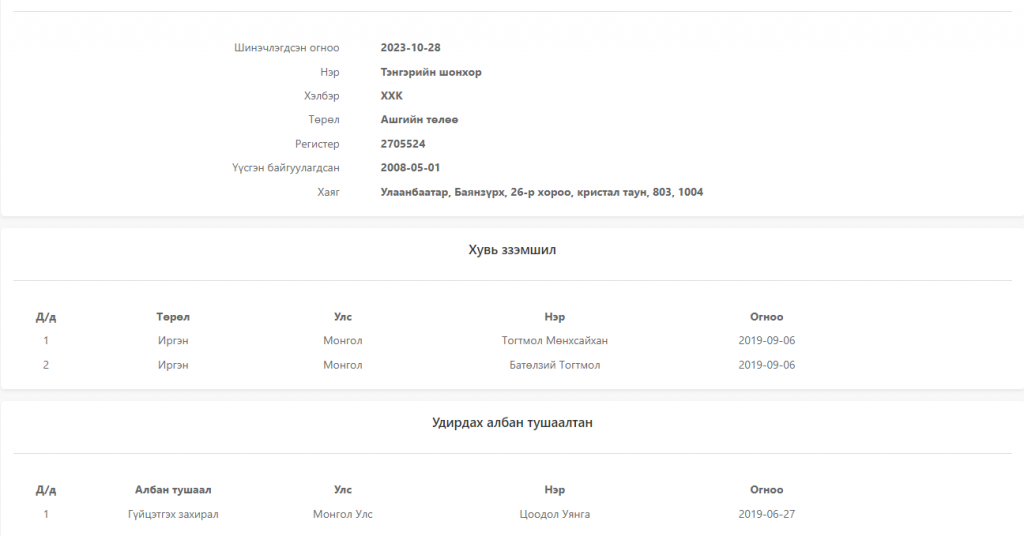 shonhor zah-d sanhvvgiin shalgalt oruulj bvh zuiliig ni shalguulmaar bnaa hvmvvsee demjeerei