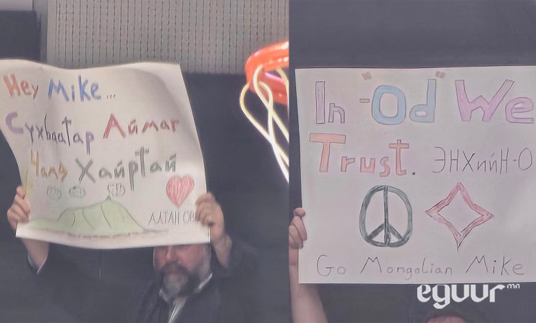 Америк эр Ш.Энхийн-Одыг "Сүхбаатар аймаг чамд хайртай" гэх лоозон бариад дэмжжээ