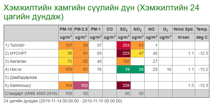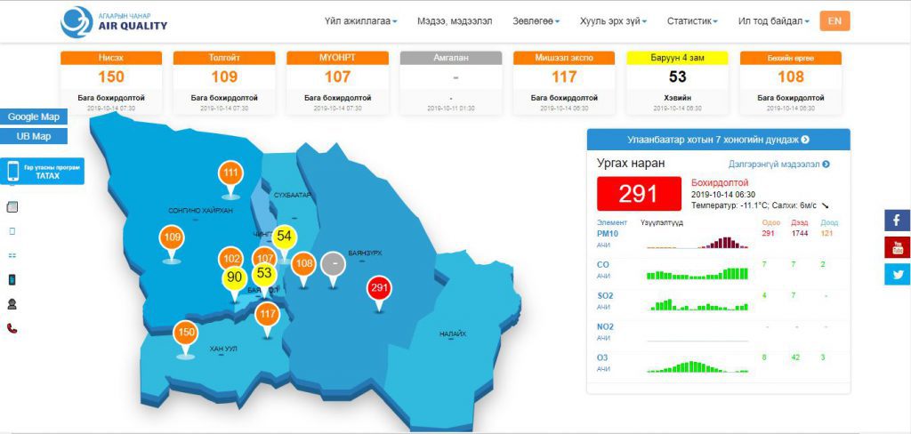 Eguur.mn сайт 2019.10.14-ний өдөр Дарь эх, МҮОНРТ-ийн орчим, Яармагийн гүүр гэсэн гурван цэгээс агаарын бохирдлын нөхцөл байдлыг тусгасан гэрэл зургуудыг авч, НИЙТЭЛЖ байв. Үүнээс хойш НЭГ САРЫН ДАРАА мөн цэгүүд дээр дахин ажиллаж, гэрэл зураг авснаа харьцуулсан байдлаар танилцуулж байна. Ингэхдээ тухайн өдрүүдийн ЦАГ АГААР, АГААРЫН ЧАНАРЫН ҮЗҮҮЛЭЛТҮҮДИЙГ хавсаргалаа. Агаарын температурын хувьд 10-15 хэмийн зөрүүтэй байгааг анхаарч хараарай.