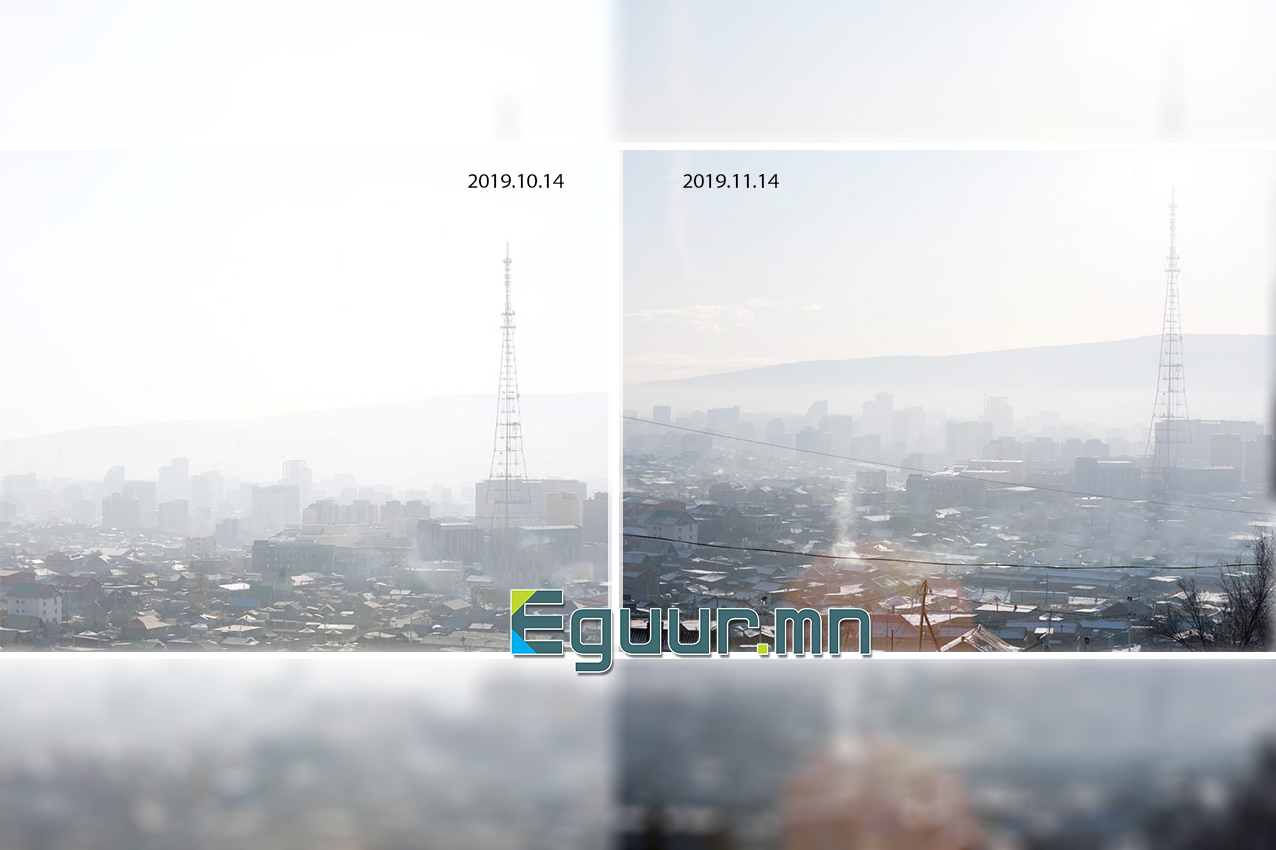 Eguur.mn сайт 2019.10.14-ний өдөр Дарь эх, МҮОНРТ-ийн орчим, Яармагийн гүүр гэсэн гурван цэгээс агаарын бохирдлын нөхцөл байдлыг тусгасан гэрэл зургуудыг авч, НИЙТЭЛЖ байв. Үүнээс хойш НЭГ САРЫН ДАРАА мөн цэгүүд дээр дахин ажиллаж, гэрэл зураг авснаа харьцуулсан байдлаар танилцуулж байна. Ингэхдээ тухайн өдрүүдийн ЦАГ АГААР, АГААРЫН ЧАНАРЫН ҮЗҮҮЛЭЛТҮҮДИЙГ хавсаргалаа. Агаарын температурын хувьд 10-15 хэмийн зөрүүтэй байгааг анхаарч хараарай.