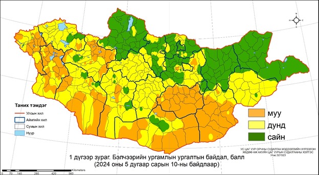 Бэлчээрийн ургамлын ургалтын байдал тавдугаар сарын 10-ны байдлаар Дундговийн нийт, Баян-Өлгий, Ховд, Говь-Алтай, Өмнөговь, Дорноговийн ихэнх, Завхан, Баянхонгорын зарим сумдын нутгаар муу.