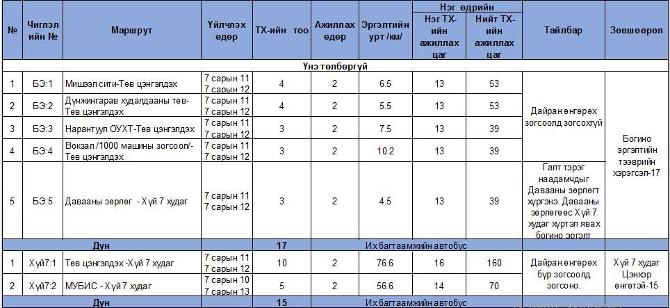 Танилц: Наадмаар үнэ төлбөргүй үйлчлэх нийтийн тээврийн долоон чиглэл