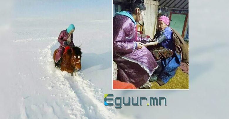 -Ямар нэгэн унаа олоод л явна. Замын унаанд дайгдана, мотоциклийн ард сундлана. Болохгүй бол ихэнхдээ мориор ч явчихдаг. Одоо өвлийн улиралд цас дарж, зөвхөн мориор явж хүрэх боломжтой газрууд бий болоод байна. Хамгийн ойрдоо бид 10-20 км явж тухайн айлд хүрнэ. Харин хамгийн холдоо 70-аад км явах болдог.