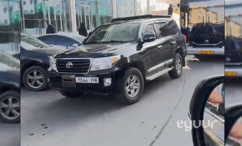 5544 УНЕ Улсын дугаартай Toyota Land Cruiser 200 маркийн автомашины жолооч хотын төв зам дээр явах эгнээг хааж, аваарын гэрлээ асаагаад орхисон байгаа тухай зураг, бичлэг олон нийтийн сүлжээнд цацагдаж, шүүмжлэл дагуулаад буй.