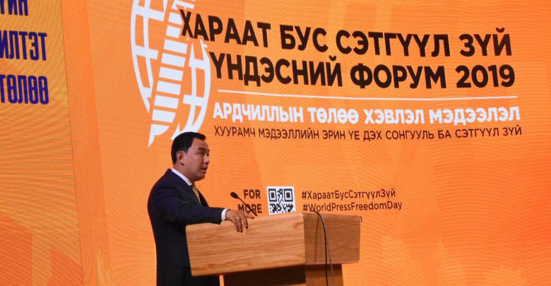 Та бүхэнд Монгол Улсын Ерөнхий сайдын нэрийн өмнөөс болон хувиасаа Дэлхийн хэвлэлийн эрх чөлөөний өдрийн халуун мэндчилгээ дэвшүүлье.Өнөөдөр та бүхэн үндэсний сэтгүүлзүйн 106 жилийн түүхээ эргэн харж, хэвлэл мэдээлэл, сэтгүүлзүйн салбарын өнөөдрийн нөхцөл байдлыг шүүн тунгааж, ирээдүйн хөгжлийн бодлогоо тодорхойлохоор “Хараат бус сэтгүүлзүй” Үндэсний форумд хуран цуглараад байна.