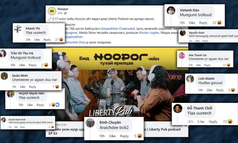 “Ноорог”-ийн асуудлаар хийгдсэн “Liberty Pub” подкэстийг тус медиа өөрийн Фэйсбүүк хуудаст байршуулжээ. Харин сэтгэгдэл хэсгийг харвал жаал вьетнам нэртэй, зурагтай хаягууд бичсэн байх юм.