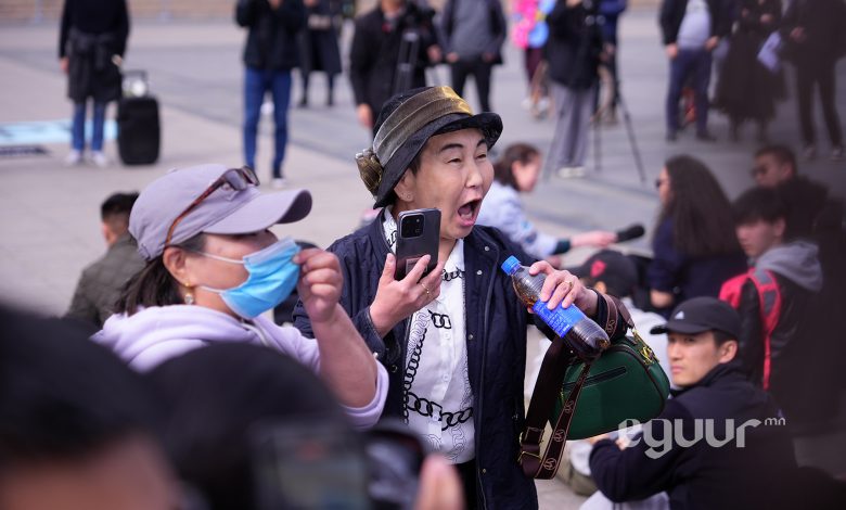 Харин тэдний эсрэг 5-7 хүн. Нас тогтсон гэж хэлж болох эдгээр хүмүүс утсаараа бичлэг хийж, "залуусыг мөнгөөр жагсаж байна. Ирээдүйгээ худалдлаа. Тарцгаа" зэргээр шүүмжилж байв.