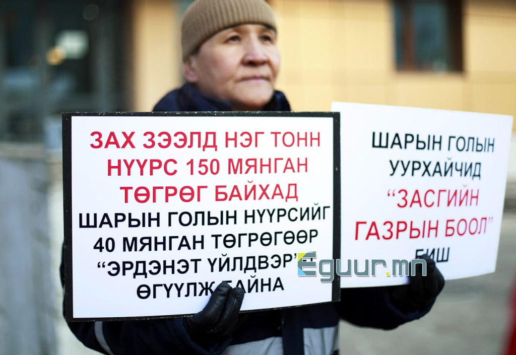 Өнөөдөр /2020.01.14/ Эрчим хүчний зохицуулах хорооны гадна талбайд Шарын голын уурхайчдын төлөөлөл тус салбарын хууль бус үйлдлийн талаар мэдээлэл хийлээ.