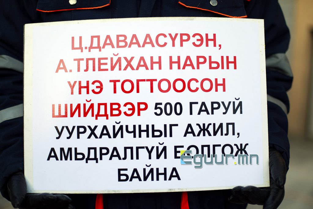 Тэд шаардах бичгээ өнөөдөр Эрчим хүчний зохицуулах газрын дарга А.Тлейхан болон Эрчим хүчний сайд Ц.Даваасүрэн нарт хүлээлгэн өгөх юм.