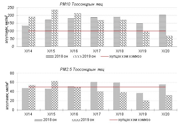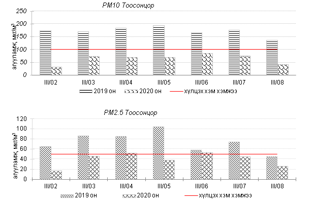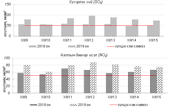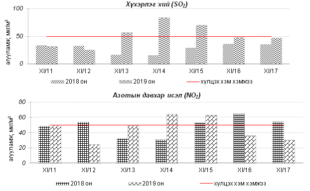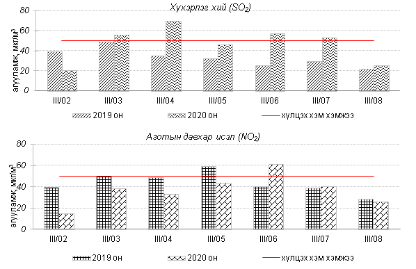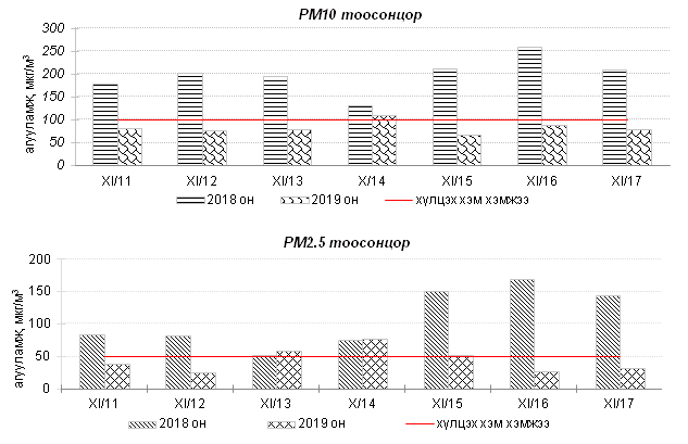 Гэрэл зурагт харагдаж буй агаарын чанарын байдлыг химийн найрлага, үзүүлэлтийн хувиар мөн харьцуулж, хавсаргав. Азотын, хүхрийн исэл болон PM2.5, PM10 тоосонцруудын хэмжээ, үзүүлэлтийг Agaar.mn-ээс эх сурвалж болгон ашиглалаа.