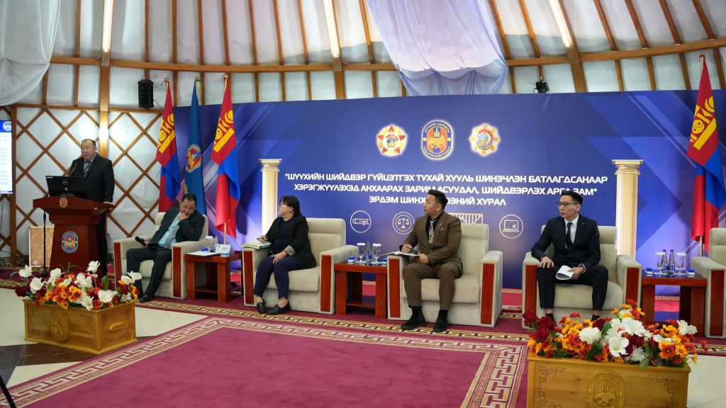 “Шүүхийн шийдвэр гүйцэтгэх тухай хууль шинэчлэн батлагдсанаар хэрэгжүүлэхэд анхаарах зарим асуудал, шийдвэрлэх арга зам” сэдэвт эрдэм шинжилгээний хурал зохион байгууллаа