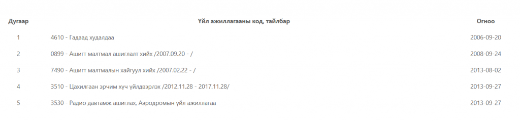 Үйл ажиллагааны чиглэл нь,