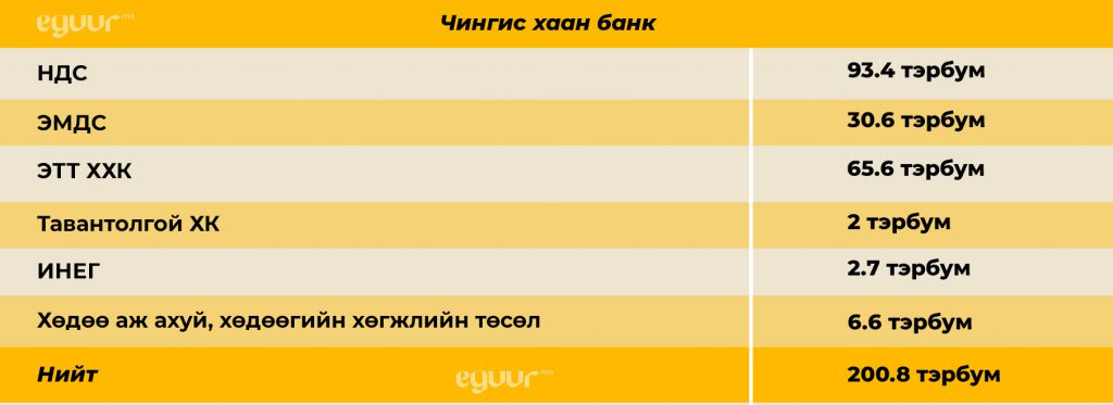-"Чингис хаан" банканд ЭМДС, НДС-гаас гадна ЭТТ ХЗ, ИНЕГ газар хүртэл мөнгөө хийчихжээ-