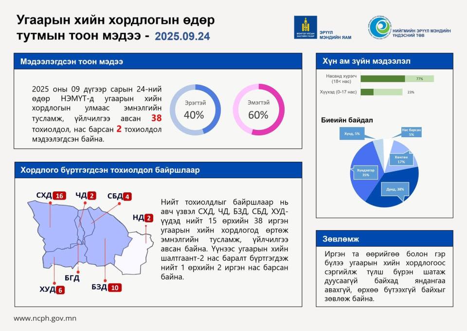 Тодруулбал, энэ сарын 24-нд хоёр, 23-нд гурван хүн угаартаж нас барсан гэж НЭМҮТ мэдээлсэн байдаг.