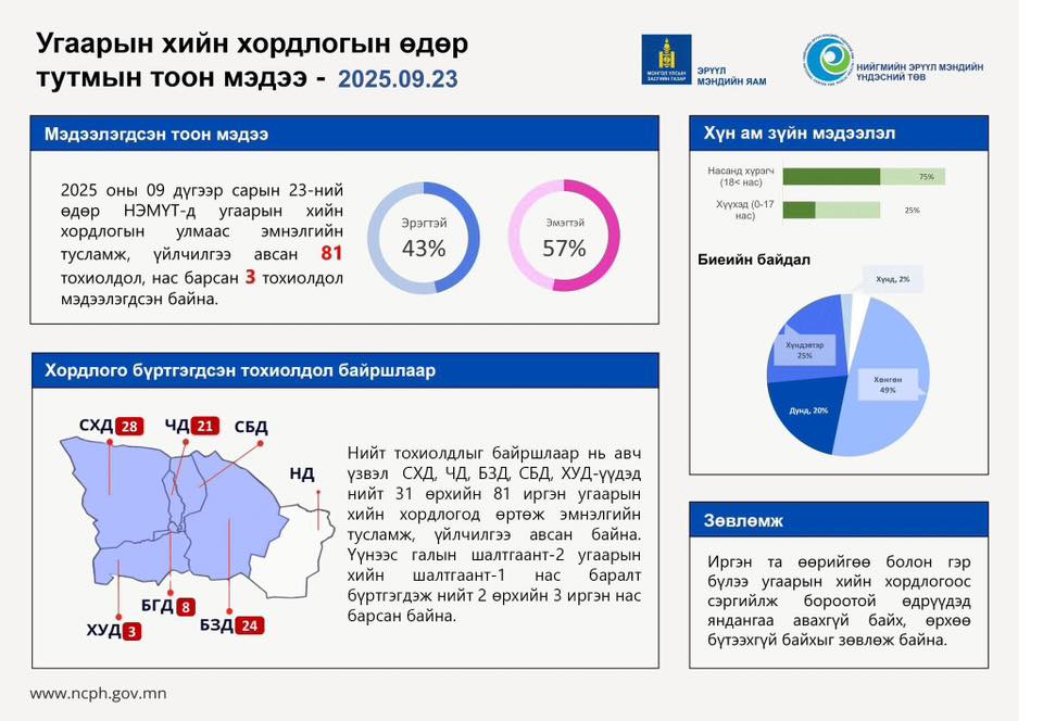 “Сонгинохайран дүүрэгт таван иргэн угаартаж нас барсан гэх мэдээлэл цахим орчин түгсэн. Сонгинохайрхан болон Налайх дүүрэгт гурван иргэн амь насаа алдсан. Харин хоёр иргэн гал түймэрт өртөж нас барсан. Тиймээс НЭМҮТ-ийг буруу ташаа мэдээлэл гаргахгүй байхыг уриалж байна" гэсэн