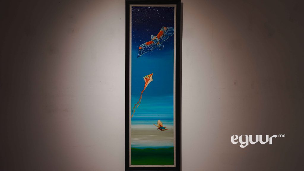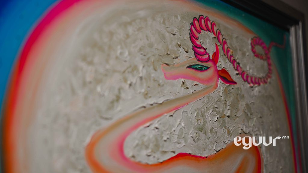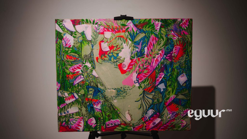 -Ер нь тийм. Эргээд харахад энэ 20 гаруй жилийн хугацаанд дунд нь зогссон үе надад бий. Таван жил яах араггүй завсарлах болсон. 2019 онд “Бодлын илгээмж” үзэсгэлэнгээ гаргасны дараа уран бүтээлээсээ хэсэг завсардсан. Шинэ хүнтэй болох гээд амьдрал эхлүүлээд ар араасаа асуудлууд гарч эхэлсэн. Амьдралын том нугачаанууд хүнийг эргэж бодоход, тунгаахад хүргэдэг юм байна. Хэцүү байсан тэр он жилүүддээ уран бүтээлээсээ л салж болохгүй юм байна гэдгийг олж харсан. Миний амьдрал хэд хэдэн удаа зогсонги байдалд орсон үе бий. Тэдгээрээс би зургаараа л эргэж боссон. Өөрийнхөө сэтгэлийг зургаар эмчилсэн шиг. Бусдын сэтгэлийг зургууд маань эмчлээсэй гэж хүсдэг.